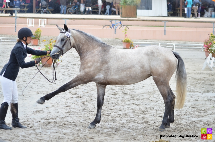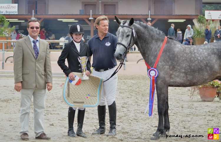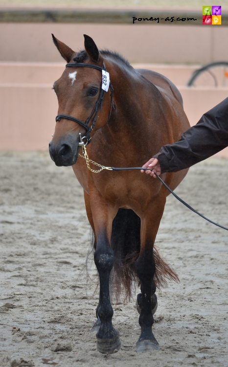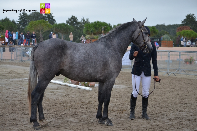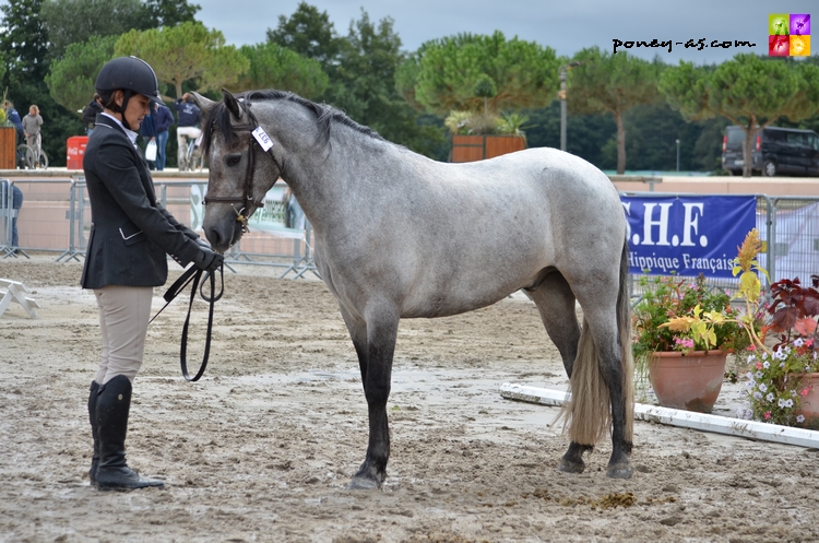 Chez les mâles tout d’abord, la troisième place est pour Ayam du Chapelan né chez Alexandrine Dalmais, fils du poney de Grand Prix CSO Forban Pondy et de Mascotte du Verron (Don Juan V), IPO 124 en 2004. Ayam était présenté par Gilbert Piau et obtient la moyenne de 13,90.
