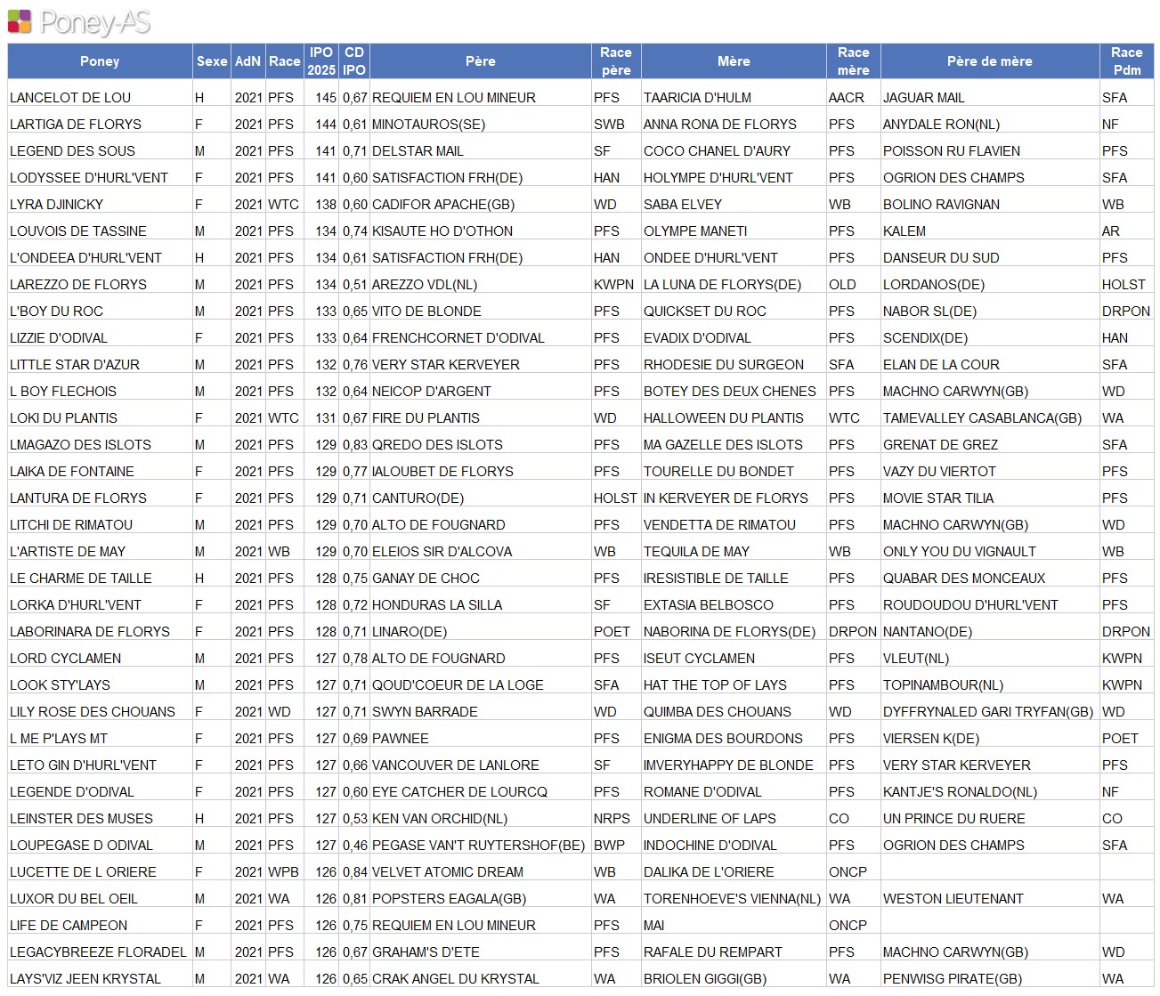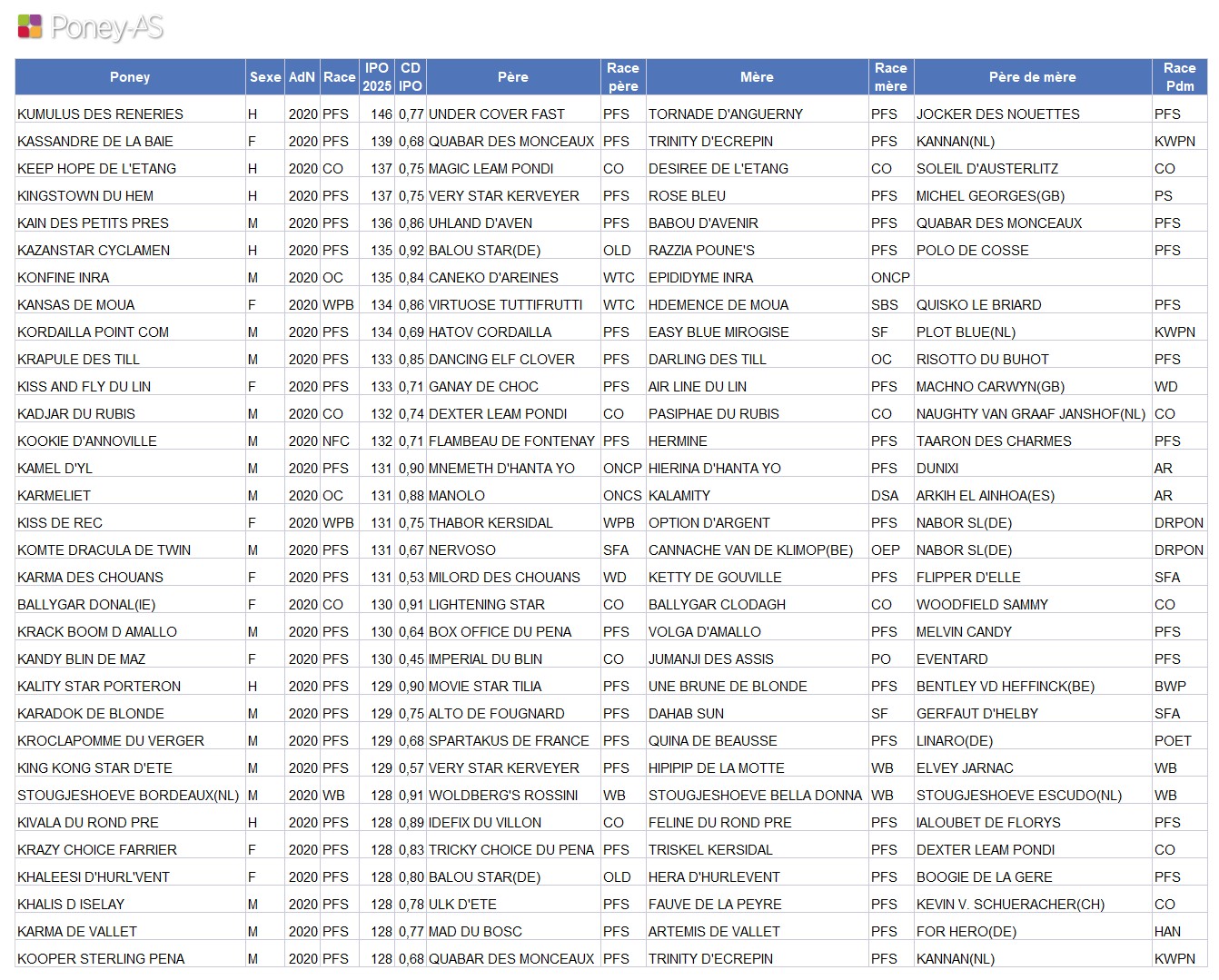 Classement des poneys de 4 ans