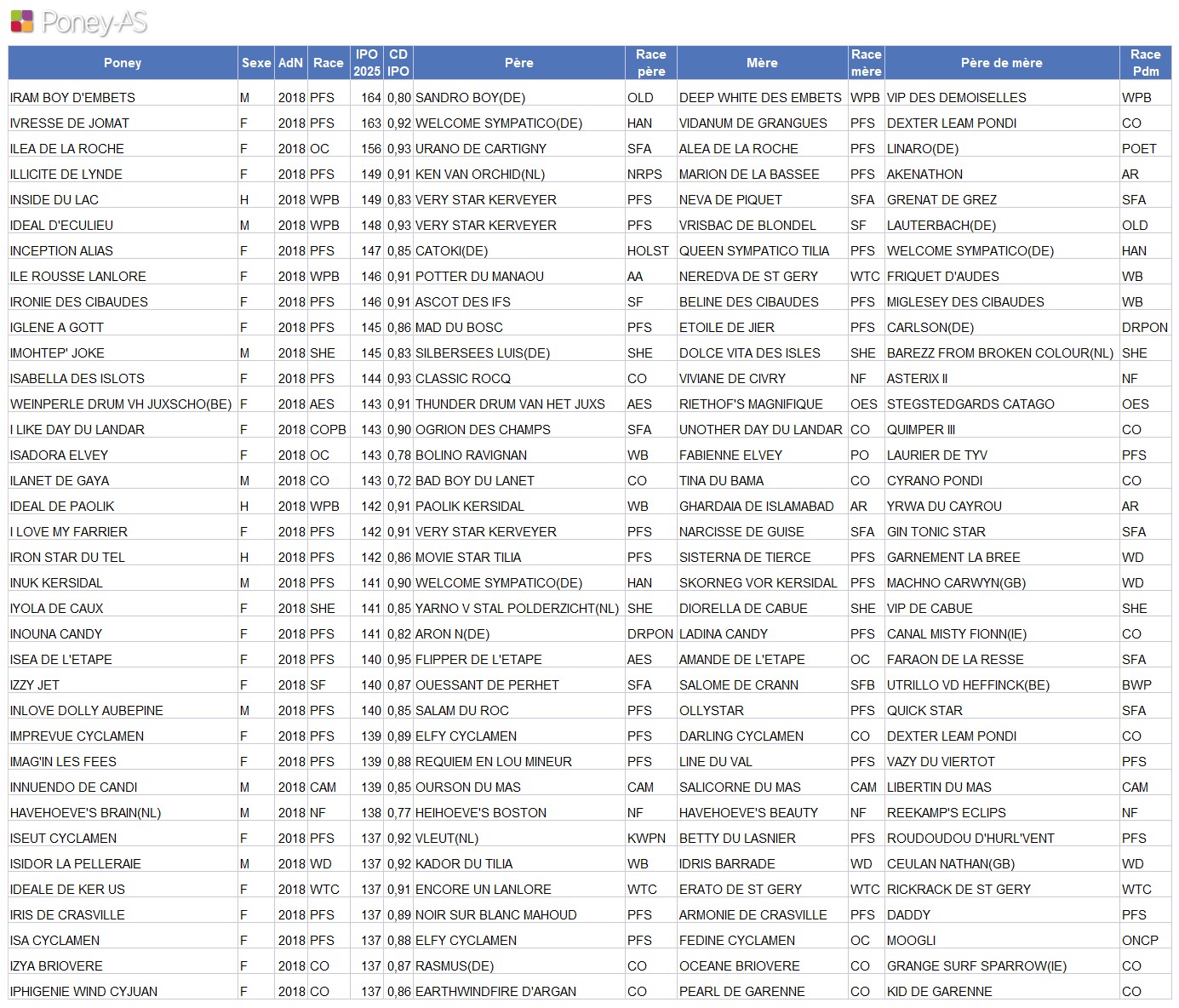 Classement des poneys de 7 ans