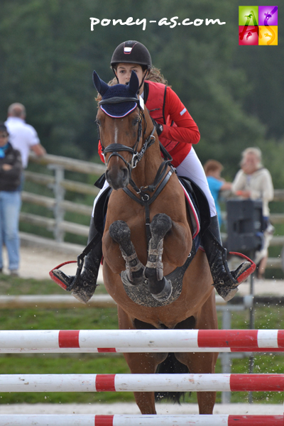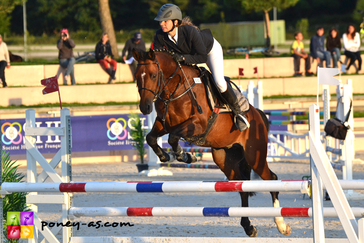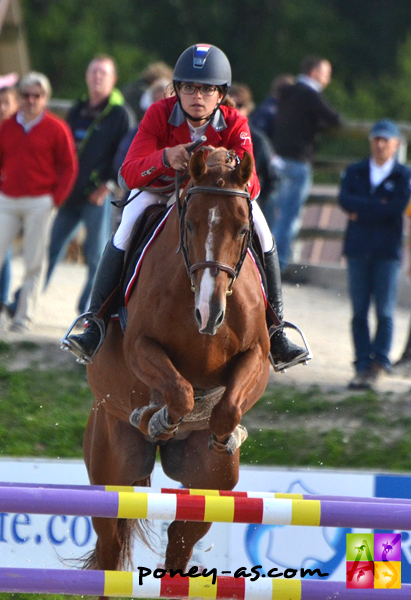 Until de Lona*Carragheen (Co, par Cyrano Pondi et Olga du Cottard par Thunder du Blin) est 7e avec une faute en première manche. Cette ponette Connemara est née chez Loriane Militon, appartient à Christiane Burguet et était montée par Sophie Mavrocordato. Elite à 5 ans, Until a réalisé 7 parcours sans faute sur 12 cette saison (IPO 141/14). Elle est également sortie cette année en CCE avec une mention Excellent lors de la finale de Pompadour (IPC 120/14). Olga du Cottard, sa mère, enregistre trois produits dont deux en âge de concourir. De cette souche proviennent de nombreux reproducteurs et compétiteurs dans les trois disciplines olympiques tels que les étalons Tanam An Diaghall et Riz de Vauptain, ou encore Platine du Preuil (IPO 137/98), Conyx du Martrey (IPC 139/97), Quota (IPO 129/98), Olivier II (IPO 140/99) ou Bolero du Grisy (IPC 131/99) et Dedale du Grisy (championnats d’Europe dressage, IPD 167/99) tous deux fils de la poulinière Jacinthe ; Radiance (GP CSO), Schtroumphette II (GP CSO), Fanfaron de Kalie (IPO 134/00), tous les trois produits de Kalie III.