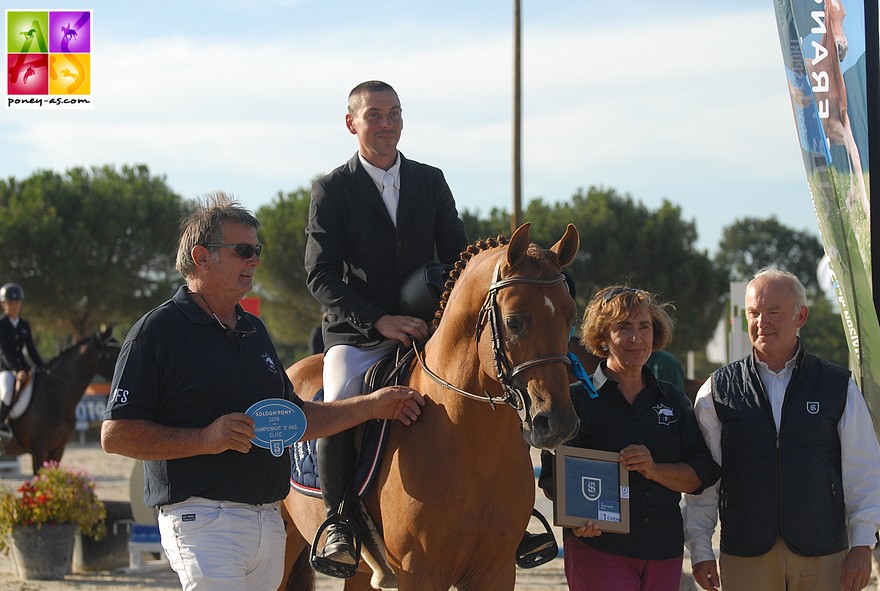 Etadam d’Odival, bel alezan valorisé par Mathieu Laisney, continue d’ajouter des distinctions à son palmarès. Après son titre de champion des mâles Pfs de 2 ans, puis celui de vice-champion à 3 ans et de champion des 4 ans D, l’étalon Poney Français de Selle de Pascal Sauvage s’offre une nouvelle mention Elite. Toujours un peu rigide dans son style devant, il a encore fait montre de beaucoup de respect. Rappelons qu’Etadam provient de la sélection de l’élevage de Christian Morel : son père est Vito de Blonde et sa mère Barby de Blonde par (Welcome Sympatico SL, Han), elle-même fille de Daisy de la Forge (Walid Al Fawzan, Ar), championne de France C2P et bonne gagnante en C1 Elite de CSO (IPO 170/98).