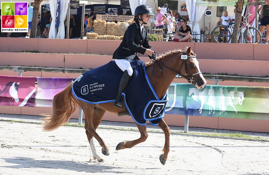 Un protégé de l’élevage d’Audes (03) de feu René Cassier est encore décoré d’une mention Elite et d’un titre de champion. Il s’agit du 4 ans Fandango d’Audes. Sous la selle de la cavalière de 14 ans Hannah Mignot, Fandango a réalisé 2 parcours sans-faute et obtenu une NEP de 14,87. Cet alezan mélangé, très à l’écoute, auteur de 9 clear round sur 11 avant la finale avec Elodie Millavaud, est un Poney Français de Selle issu du Welsh B performer en C1 Elite de CSO Iram d’Audes et de Navette d’Audes (par Rocky Grichet, Co). Il s’agit donc d’un propre frère d’Elastic d’audes, champion de France ex aequo dans cette même catégorie l’an passé, et un frère utérin de 5 poneys indicés à plus de 120 dont Spatial (IPC 143, IPD et IPO 132), Tornade d’Audes (IPO 139), Brigand d’Audes (IPO 136) et l’étalon Pfs Champagne d’Audes (Excellent à 4 ans, Elite à 5 ans et Très Bon à 6 ans en CCJP de CSO, IPO 142).