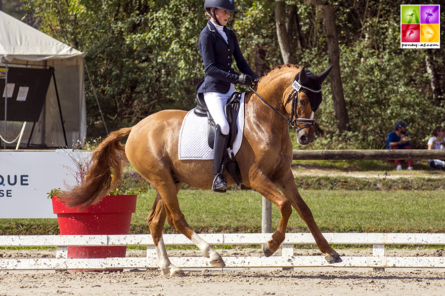 Les deux poneys allemands de Laurence Milet, positionnés aux deux premières places de la seconde reprise, sont 3e et 4e du classement final. Il s’agit d’Hesselteichs Domino (Drp, par Donnerwetter) et Hesselteichs American Pie (Drp, par Gorgeous), présentés par Floriane Peligrain. Le Gestüt Hesselteich d’Ulrike Hemschenherm, situé à Versmold en Allemagne, visité par le team Poney As il y a quelques années, avait été mis à l’honneur en France grâce à Desert Rose, sous la selle de Camille Boireau.