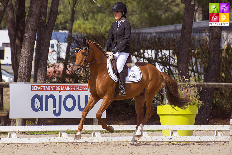 Deuxièmes de la première reprise (75%) derrière le Welsh Cob Druide d’Heolan (par Cathael Caradog) présenté par Maud Poulin, la grande Jade et son mâle alezan ont remporté la seconde (79,8%) s’emparant ainsi du championnat (77,4%). Outre une petite faute dans le développement au trot dimanche et quelques petites résistances relevées par le jury (qui relativisait néanmoins), ce dernier n’a pas manqué de souligner son très bon potentiel. Delyr comptait 3 premières primes sur 3 avant la finale.
