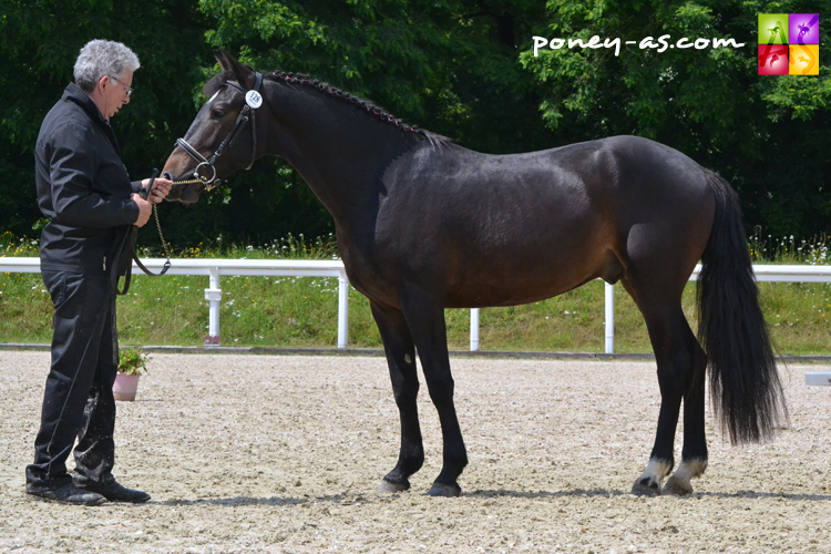 Il est suivi par le plaisant fils d’Under Cover Fast (performer Grand Prix Dressage) et de Snowdrop du Luot (Cyrano Pondi), Everest du Verdon, né à la SCEA Haras du Verdon (49). Ses scores ? 79/100 au modèle, 46,33/60 aux allures et 29,50 à l’obstacle pour une moyenne générale de 15,48/20. Everest est issu de la souche Connemara Passport via Vinca II, la mère d’Iphygenie (Kilkady Darling), poulinière qui a donné Meribelle II (Naughty van Graaf Janshof SL), soit la mère de Snowdrop du Luot ! L’occasion de rappeler en quelques mots les descendants de la matrone Passport… Ses fils étalons se sont fait remarquer à l’instar de Gulf Stream, Icare (père de Titamour, CSIOP) et Helios (père de mère de Volta des Vallots, championne de France Grand Prix Elite, championnats d’Europe CSO). Côtés femelles, la branche Farah a donné Quintette III (mère des étalons performers en GP CSO Funambule II et Jousselin, de la poulinière Dame des Vents, mère de l’européenne en Dressage Opale des Vents….) et sa propre sœur Vinca II (père de l’européen Bacchus, des étalons performers Don Juan V, Eloi IV, Leadership…), et celle d’Isabelle (mère notamment de Mustafa, IPO 134, Salomon III, ISO 124) a permis de découvrir notamment Lucrece IV, mère d’excellentes poulinières au regard d’Annina du Thenney, mère du champion d’Europe par équipes de CCE, Everest du Canon et du performer en CSIOP, l’étalon Saphir de Cormeilles…