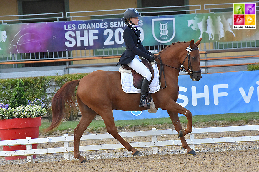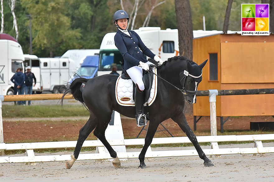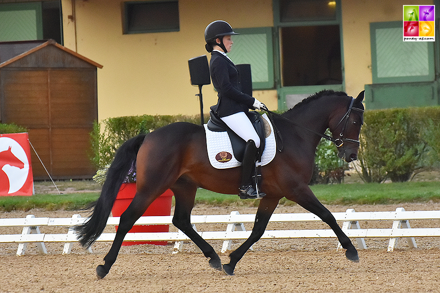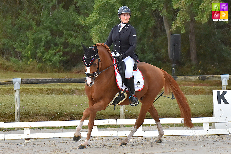 Le couple a devancé le poney de selle Allemand Nablissimo Star (par Navignon et Vroni par Van Gogh R), né chez Christel Nomtmann Kroger et monté par la cavalière olympique Jessica Michel-Botton Ce joli mâle bai, sacré vice-champion avec un score de 80,80%, montrant un très joli galop et de la souplesse, a remporté la reprise préliminaire (80,20%), avant de se faire devancer dimanche (2e, 81,40%).