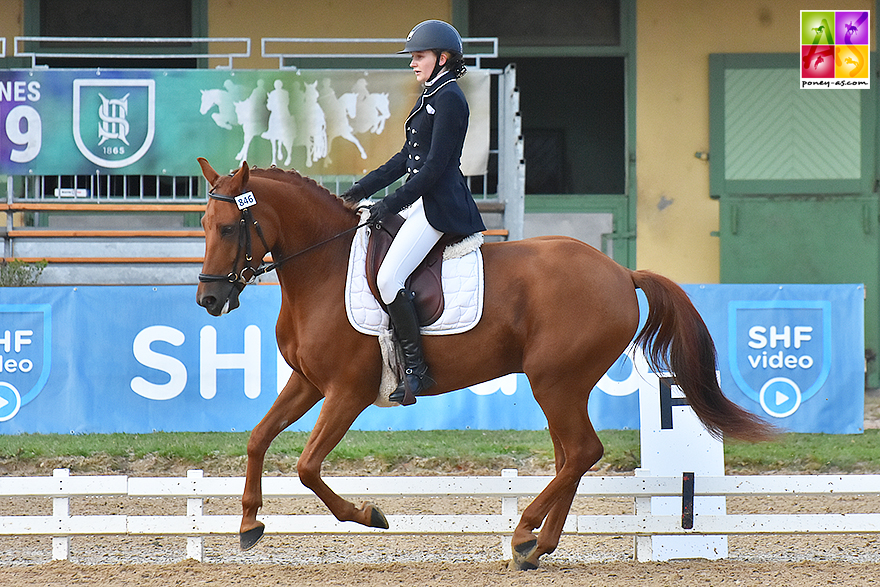 L’harmonieux Dragon Ball de Mel (Pfs, par Aron N SL, Drp et Ulema de Villée par Kiss Me de Villée), vice-champion des 5 ans, est de nouveau Elite associée à Jill Sihalathavong (75 et 73,20% pour un total de 74,10%). Ce poney, né chez Caroline Grou dans la Sarthe, quitte ainsi le circuit SHF avec trois mentions Elite. Le jury a souligné la qualité de son galop, sa meilleure allure, régulier et équilibré.