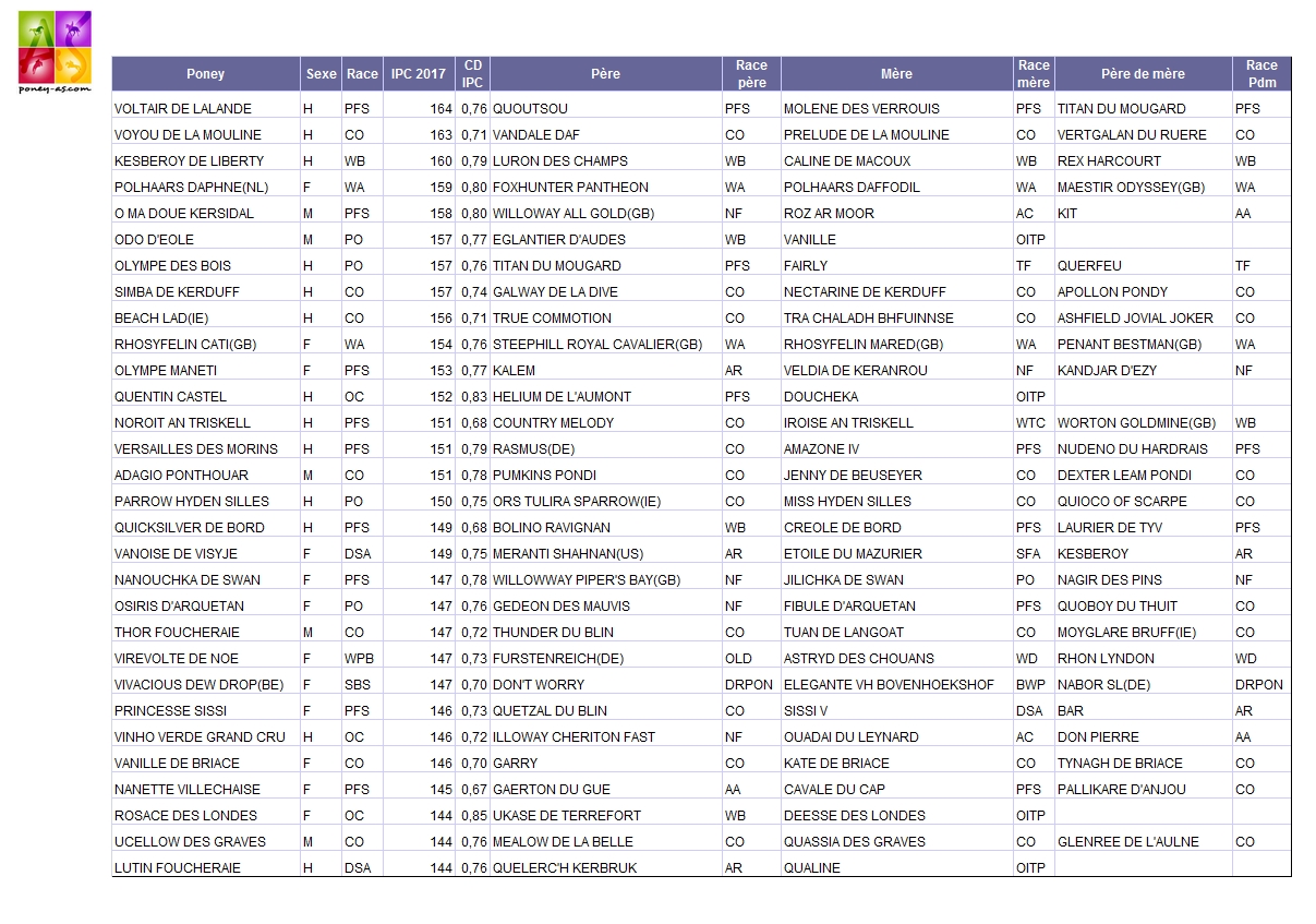 A noter que le champion des 4 ans de CCE, Djem du Casteras, détient un IPC de 121 cette année : il est troisième de ce classement.