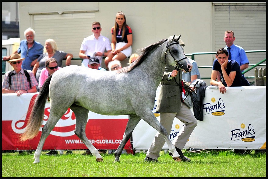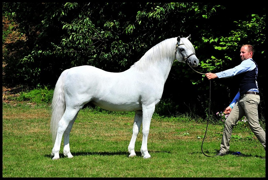 Mais qu’entend-on par show ? La plupart des éleveurs de poney de sport français envisagerait cette activité à la limite du mépris, le voyant comme un « concours bout de longe ». En réalité, il faut rappeler que le poney Welsh compte 5 sections : le Welsh Mountain ou section A, le Welsh Pony ou section B, le Welsh de type Cob, ou section C, le Welsh Cob, ou section D, chacune avec ses caractéristiques de taille et de type, et enfin le Welsh part-bred qui peut être un cheval ou un poney et qui doit avoir 12.5% de sang pur Welsh ; notons que les Pays-Bas ont inventé une section bien à eux, celle anciennement appelée Welsh K et depuis plusieurs années, Poney de Selle Welsh Néerlandais, qui est un type de poney assez fixé, mélange majoritairement de Pur-sang et de Welsh A et B ; ce poney, reconnu pour son look, l’étendue de ses rayons qui le fait ressembler à un petit cheval, ainsi que la qualité de ses allures, a d’ailleurs une influence sur le Poney de Selle Allemand. Ainsi, dans ces concours de modèle et allures, il s’agit de récompenser le meilleur type Welsh, le meilleur modèle et la meilleure locomotion au pas et surtout au trot. Rentrons un peu dans le détail de ces caractéristiques recherchées par les juges. Quand l’une des trois caractéristiques est générale, la qualité du modèle de n’importe quel cheval ou poney (qualité des pieds, sortie, longueur et orientation de l’encolure, qualité du squelette, longueur et angle de l’épaule, solidité du dos, longueur de la croupe, angle et force des jarrets), les deux autres sont en revanche typiquement Welsh : le type se réfère à un corps fort et musclé… et naturellement un peu gras, des fanons fournis et une tête petite avec des grands yeux foncés, des petites oreilles, une attache de queue haute et une certaine épaisseur – c’est ce point, qui permet de conserver au poney Welsh l’image de plus joli poney du monde et qui est sujet à interprétation, polémiques et controverses au sein même du groupe des grands experts de la race (et il faut en être un pour juger très justement de la qualité du type d’un poney Welsh) ; enfin la locomotion qui doit être puissante, active, avec des allures relevées héritées du sang Hackney et respirant ce fameux « spirit and fire » (en gros, une attitude volontaire et bouillonnante).