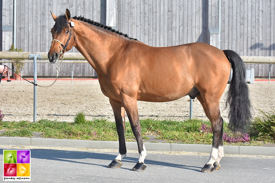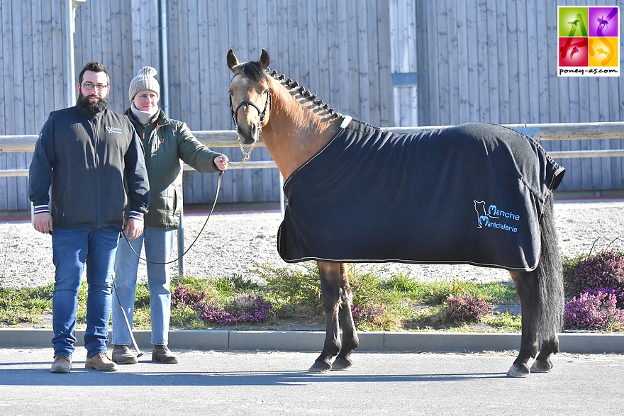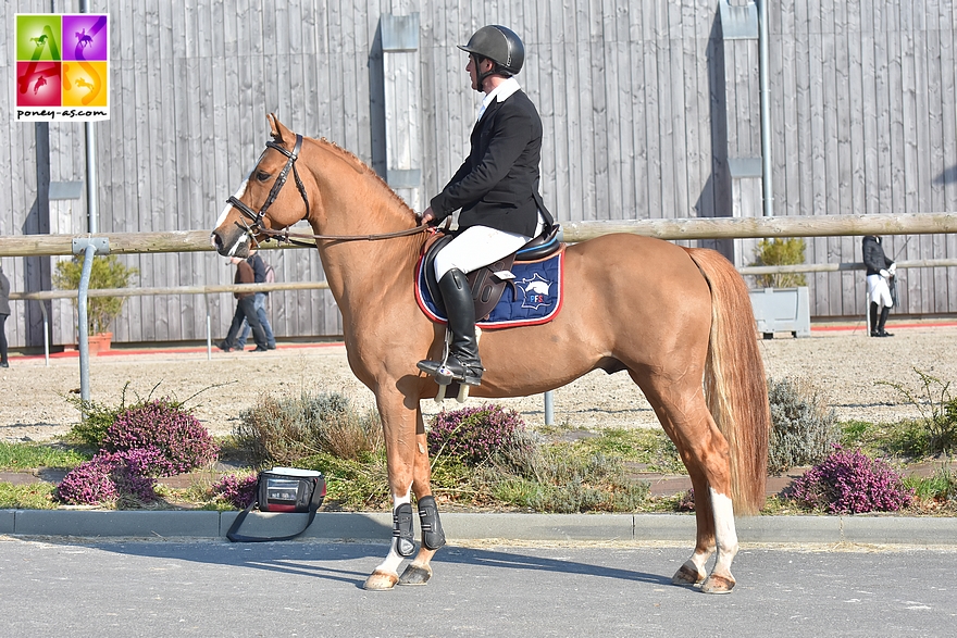 Engel des Herbages (Pfs, par Machno Carwyn, Wd et Nitro des Herbages par Island de l’Aumont), présenté par son naisseur et propriétaire Philippe Rainteau chez qui il fera la monte, avait lui cet été pris la 5e place de la finale nationale des mâles Pfs de 3 ans.