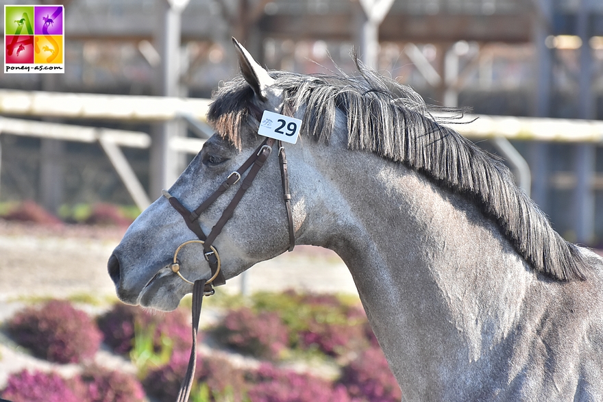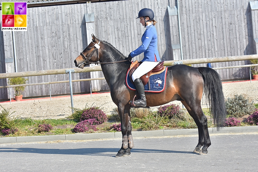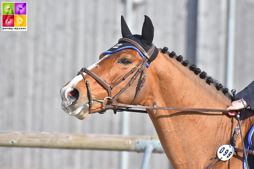 Le charismatique Ciceron Fever Well’s (Pfs, par Goldfever, Han et Thalia de l’Aurore par Jimmerdor de Florys SL), mention Très Bon en finale du CCJP de CSO 5 ans D, a été présenté pour le compte de sa naisseuse, Gaëlle Vennettilli Bohec.