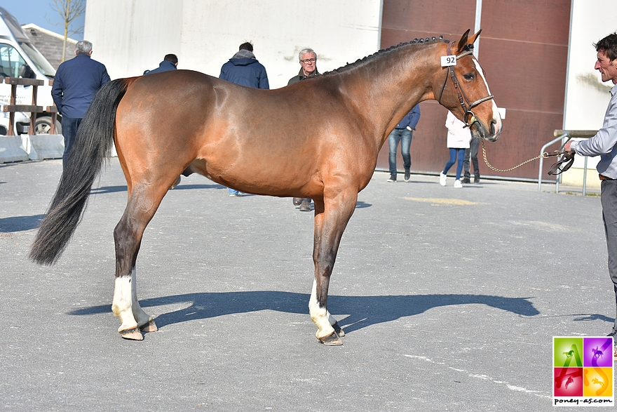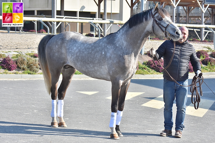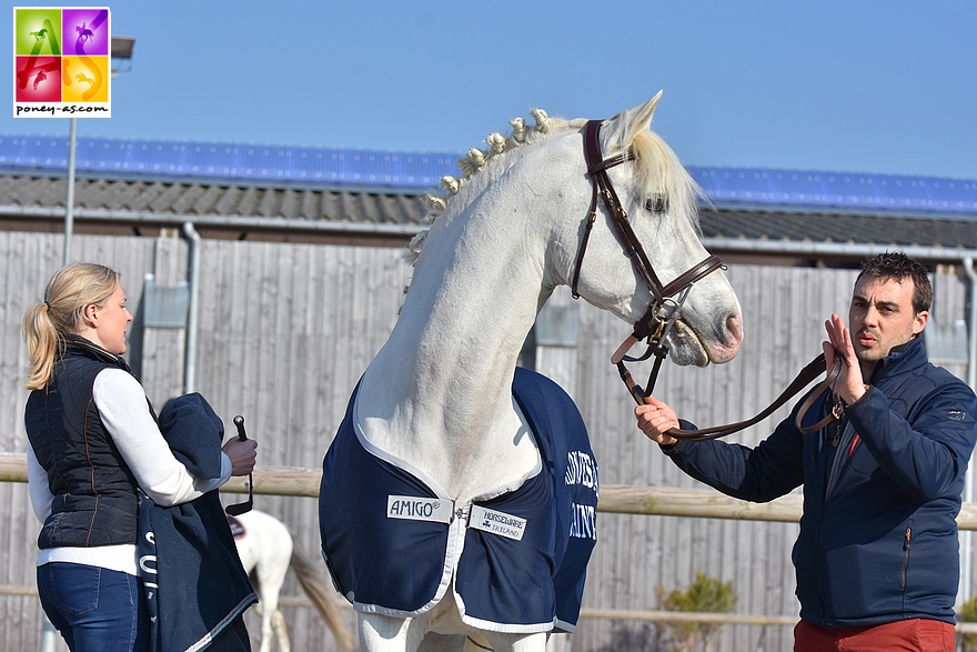 Le Haras de Cordemais était venu comme au Lion d’Angers avec le jeune Flamingo Sereld’Hel (Pfs, par Batman d’Eté et Bulle d’Eté par Dexter Leam Pondi, Co), né chez Elise Alexandre et classé 5e de la finale nationale des mâles Pfs de 2 ans et le grand sire Allemand, Welcome Sympatico SL (Han, par Sandro et Patella par Gaylord, Oes). Gagnant en CSI 4* sur 1,50 m et 1,55 m, le papy, toujours bon pied bon oeil du haut de ses 27 ans, est le père de 4 produits européens : Shamrock du Gite (champion d’Europe de CSO en individuel et en bronze par équipes, champion et vice-champion de France As Poney Elite Excellence), Scampolo (étalon, 5 participations en dressage dont une Kür), Politica de Florys (finaliste en CSO par deux fois, IPO 166/11) et Sando (2 participations en CSO) et de plusieurs poneys de Grand Prix de CSO.