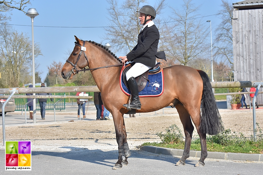 Badboy de la Comoé (Co, par Bunowen Paddy et Kabriole de la Belle par Thunder du Blin), né chez Jean-François Coutentin et distribué par Pony Planet, a évolué en CCJP de CSO de 4 à 6 ans, obtenant les mentions Très Bon à 4 ans et Excellent à 6 ans (IPO 125/17).