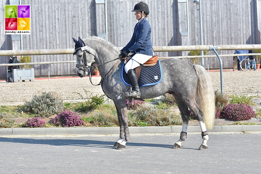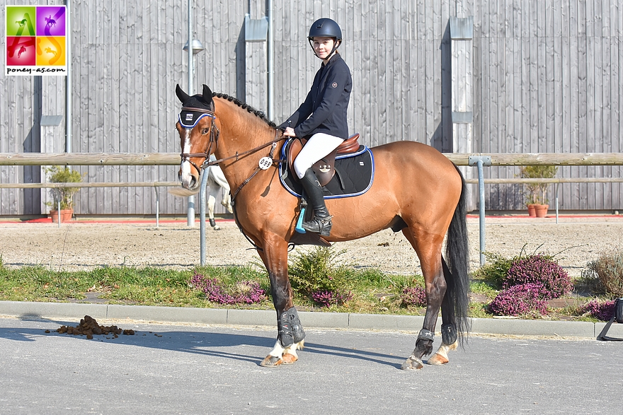 Jennifer Pardanaud (Ecurie de la Frênée) avait comme l’an passé amené son Djungle Speed (Pfs, par Upso d’Aunou, Sfa et Kilina Aluinn, Co par Thunder du Blin), 5e des mâles de 2 ans au National Pfs, puis 4e des mâles de 3 ans (17,50/20 à l’obstacle) avant de concourir l’an passé sur le circuit du Cycle Classique Poney de CSO en 4 ans D.