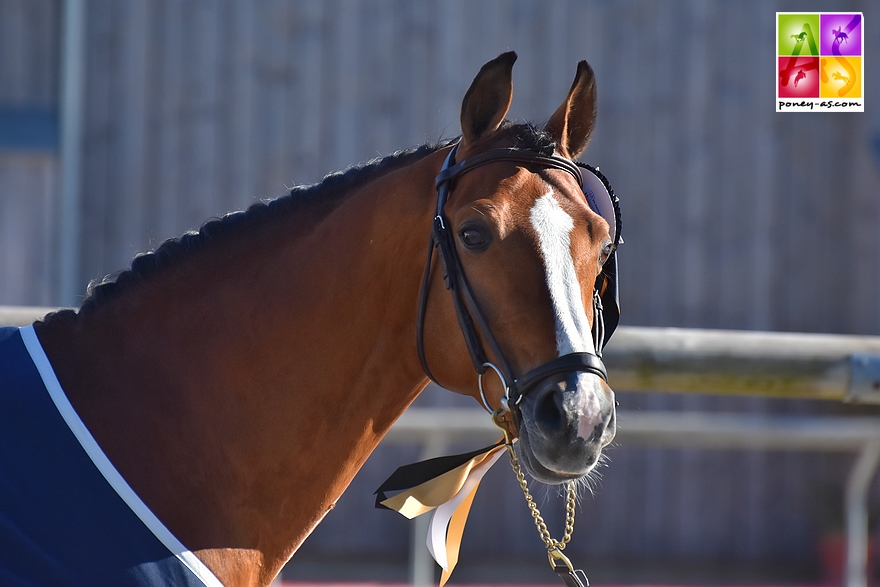 Le double champion de France des mâles Poneys Français de Selle de 2 et 3 ans, Champagne d’Ar Cus (Pfs, par Machno Carwyn, Wd et Utopie de Kerglenn, Sfa par Quidam de Revel), né et appartenant à Erell et Fabrice le Berre, s’est l’an passé octroyé la mention Excellent lors de la finale des 5 ans D de CSO (IPO 136/17).