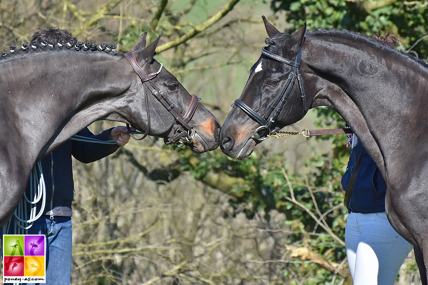 Le Haras de Surrain de Fabienne Bianchi Luraschi présentait deux étalons : Dancing Elf Clover (Pfs, par Unik d’Ick, Sfb et Ivoire du Milon, Co par Simoun de Ravary) et Syriac (Pfs, par Machno Carwyn, Wd et Letizzia, Po par Shining Starr Aristo, Poet). Le premier a obtenu à 4 ans la mention Excellent en CCJP de CSO (IPO 130/17), décrochant la meilleure note de modèle ex aequo de sa catégorie d’âge (18,5) et le second, a été performer jusqu’en Grand Prix de CSO, remportant le Grand Prix Excellence d’Equita’Lyon (IPO 143/14).