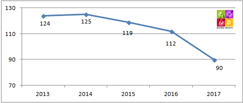 Évolution du nombre de poneys finalistes de 2013 à 2017 – SHF CSO 4 ans D
