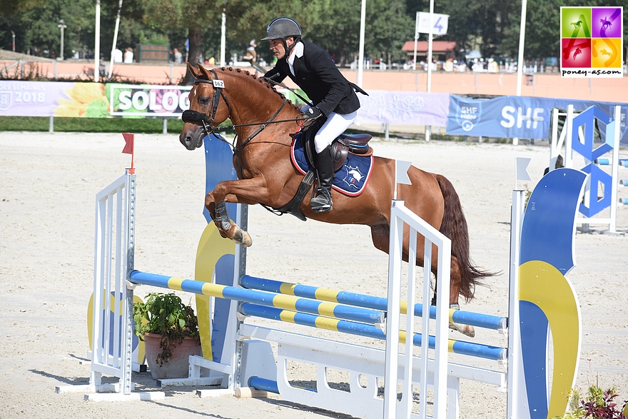 Champion des mâles Pfs de 2 ans, vice-champion à 3 ans, l’étalon de Pascal Sauvage Etadam d’Odival est cette fois sacré champion des 4 ans D et reçoit la meilleure NEP de ce championnat : 15,80 (14,2 sur la phase montée et 19 au modèle) en plus d’un double sans-faute sous la selle du cavalier professionnel Mathieu Laisney qui le monte depuis le début de l’année. Magnifique poney avec de beaux tissus, doté d’élasticité, d’un bon galop et d’un coup de saut marqué par beaucoup de respect, Etadam semble aussi montrer un caractère bien affirmé. Il aurait d’ailleurs pu perdre son titre de champion de France sur le dernier obstacle de la deuxième manche si son excellent cavalier (par ailleurs pilote du champion des 6 ans) n’avait pas rétabli la situation in extremis. Côté pedigree, Etadam rassemble les courants de sang de l’élevage de Christian Morel, grand ami de son naisseur et propriétaire Pascal Sauvage (52) : il s’agit d’un fils de Vito de Blonde et de Barby de Blonde par (Welcome Sympatico SL, Han). Barby de Blonde est une fille de Daisy de la Forge (Walid Al Fawzan, Ar), très compétitive en C Elite de CSO et championne de France C2P (IPO 170/98). Le bel alezan avait réalisé 9 SF/12 avant la finale et devrait continuer sur le circuit avec le même cavalier.