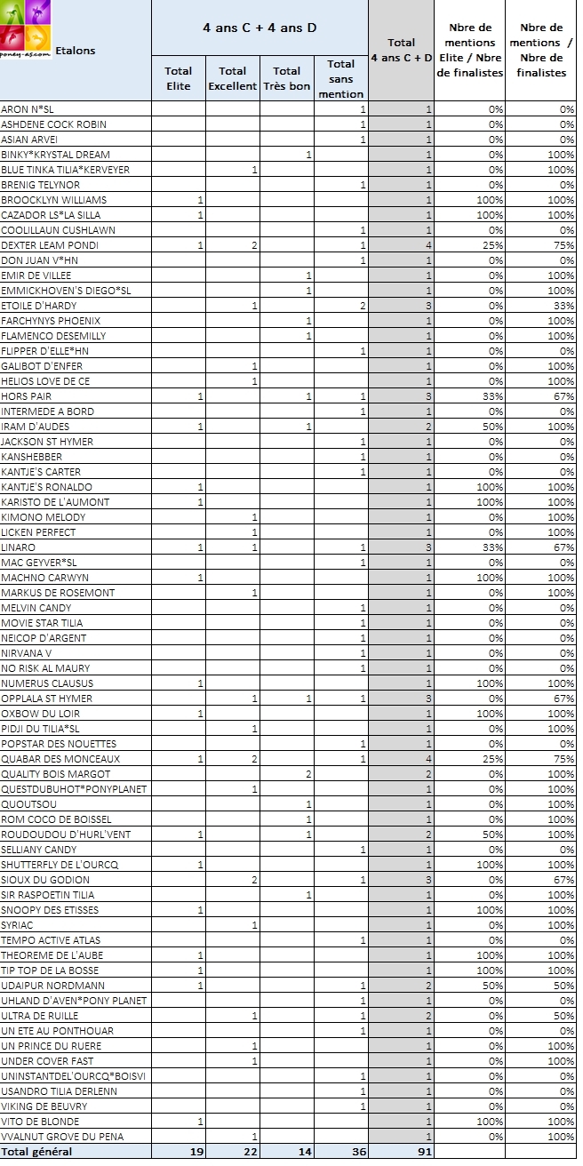 Mentions Elite – 15 poneys / 77 (19%)