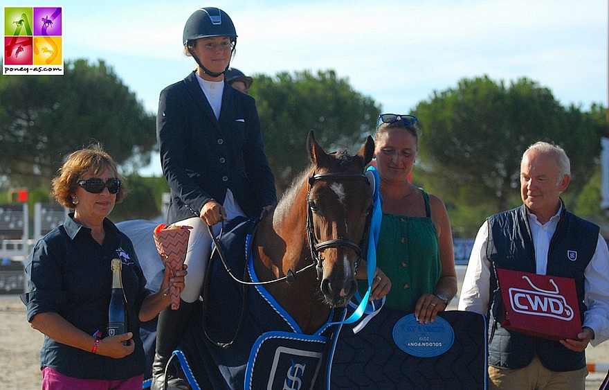 Elle a devancé 19 autres poneys Elite dont la bondissante Elme Destiny’s (Oc, Linaro SL, Drp x Quick Star, Sf) montée au pied levé par Aude Bennoin et sacrée vice-championne ainsi que trois poneys classés à la troisième place ex aequo : l’étalon Pfs Etadam d’Odival (Vito de Blonde x Welcome Sympatico SL, Han), champion des 4 ans l’an passé, sous la selle de Mathieu Laisney ; Electre d’Elb (Pfs, Linaro SL, Drp x Don Juan V, Co) montée par Marion Bondon et El Angel de Florys (Pfs, par le Connemara Idéfix du Villon SL et la ponette Allemande Angel, vice-championne d’Europe de CSO en indivdiuel) présenté par Aurélie Larosa Mahé.
