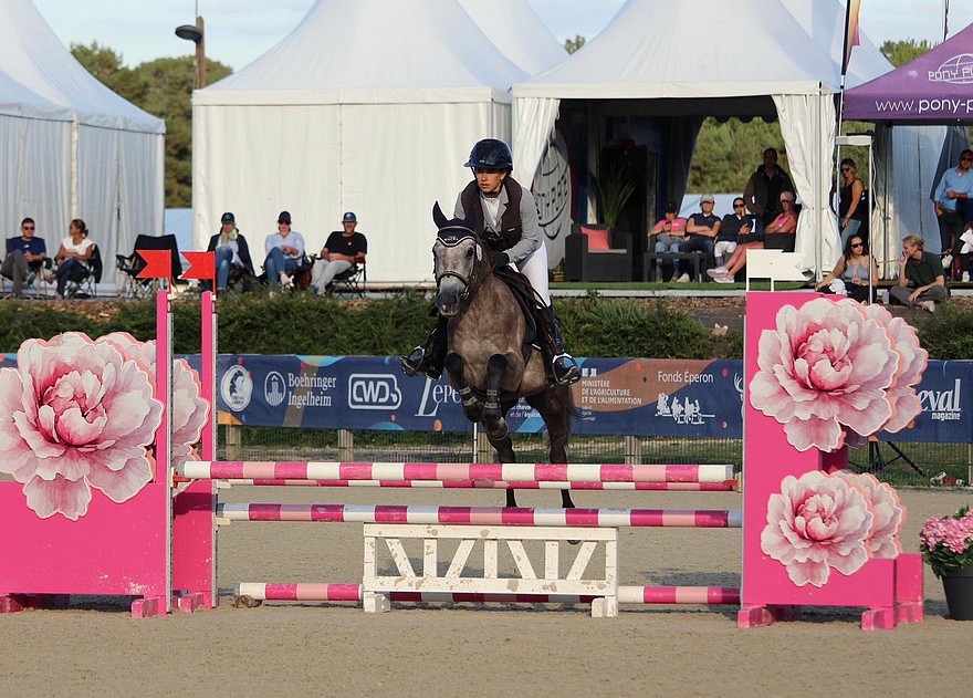 Hongre PFS, gris, classé 8e (Excellent) de la finale de CSO des mâles et hongres 4 ans D.