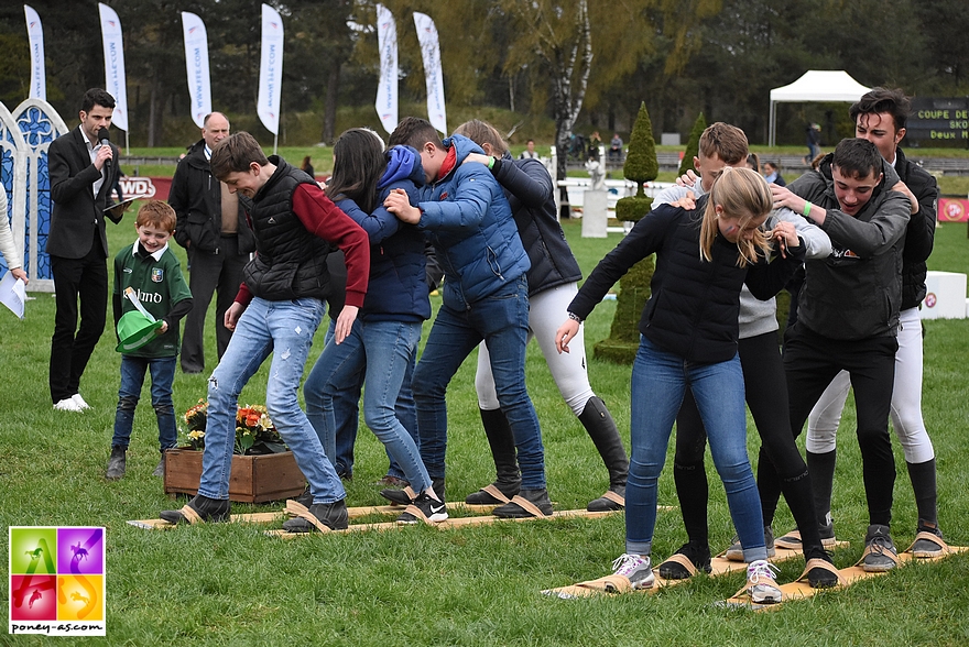 Juste avant la Coupe des nations, quatre cavaliers de chaque équipe sont montés sur les skis pour un aller-retour à réaliser le pus vite possible. A ce petit jeu, les Irlandais ont été très efficaces et ramènent donc 1 point à leur compteur. Qui de l’Irlande ou de la France, actuellement ex aequo, sera sacrée dans la Battle Poney As ? Réponse cet après-midi à l’issue du parcours du combattant ! Venez supporter vos équipes entre les deux Grands Prix !