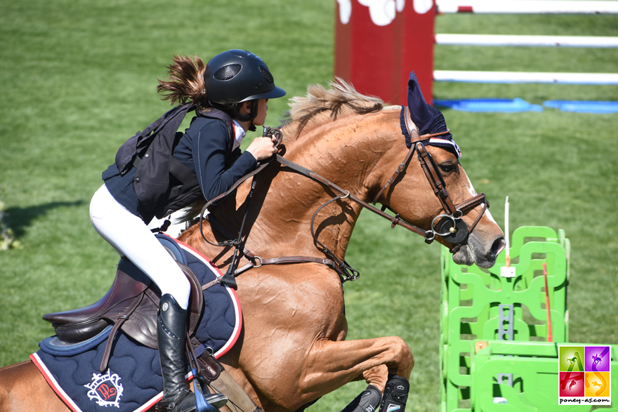 Il y a également eu 4 sans-faute sur le tour initial dans le tour réservé aux poneys de 7 ans. Avec le double 0 le plus rapide, Caramel de l’Etape s’impose, monté par Camille Lenzotti. Pour une seconde de trop au barrage, l’Allemand Liam Broich et Da Capo 226 terminent à la deuxième place. Enfin le podium est complété par Lola Brionne qui présentait Clémentine, pénalisée d’une barre au barrage. Enfin, la cavalière de l’équipe de France Romane Orhant n’a pu éviter une barre avec Champagne d’Ar Cus. Etant moins rapide que Lola, elle termine quatrième.