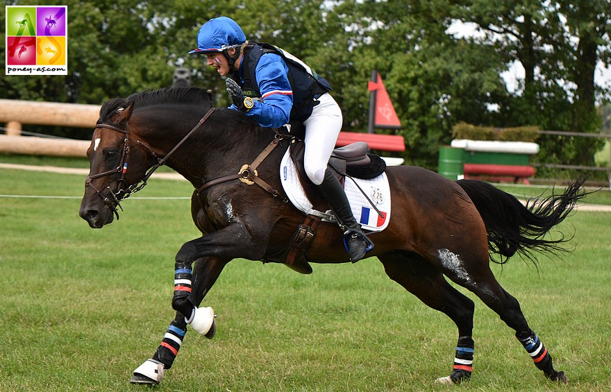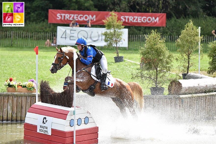 Du côté de nos cavaliers individuels, Chloé Gualtieri, pour son premier championnat d’Europe, réalise le seul parcours « maxi » du clan Français ! Avec son très bon Virtuose Teakitina, elle réalise un sublime parcours qui lui permet de remonter à la huitième place individuelle (4,1 points de la tête). En revanche, ce fut un peu plus compliqué pour Manon Marin et Urgence de Bel Air. La jeune tricolore essuie un refus sur la sortie du premier gué, en plus de quelques points de temps (seulement 3,2 points malgré son refus !). Elle pointe donc ce soir à la 27e place.