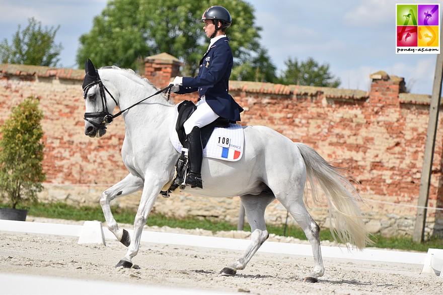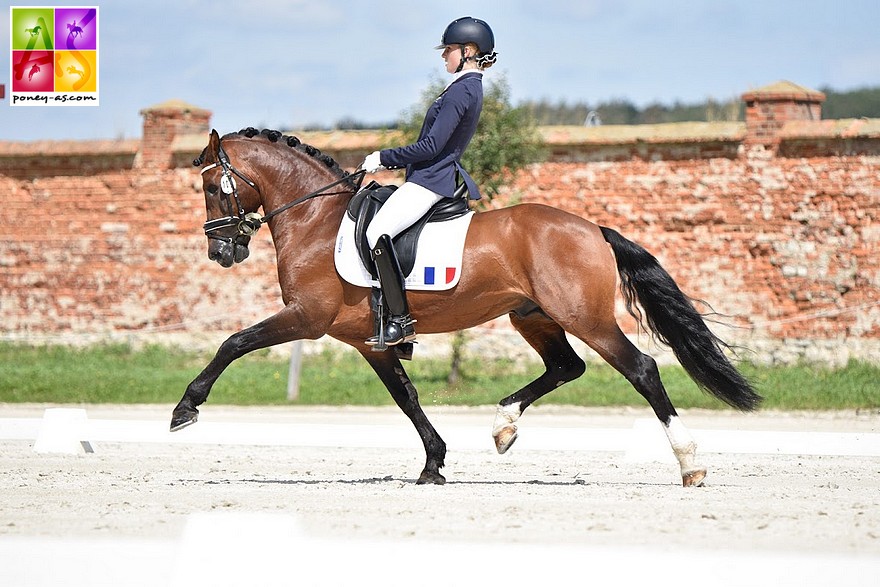 Et la France ? Malheureusement, la situation ne s’est pas améliorée après le passage d’Enora de Vienne et de son étalon Swyn Barrade. Alors que la détente s’était bien déroulée, le poney a commencé à chauffer avant même l’entrée dans le carré, apeuré par une personne ayant fait tomber ses feuilles de protocoles et qui en les récupérant, les a secoué devant le poney français borgne d’un œil. Très tendu, la reprise a donc été très compliquée (départ au galop au début d’un allongement au trot, faute dans les changements de pieds…). La note finale est ainsi très loin de ce que l’on pouvait espérer : 63,2%.