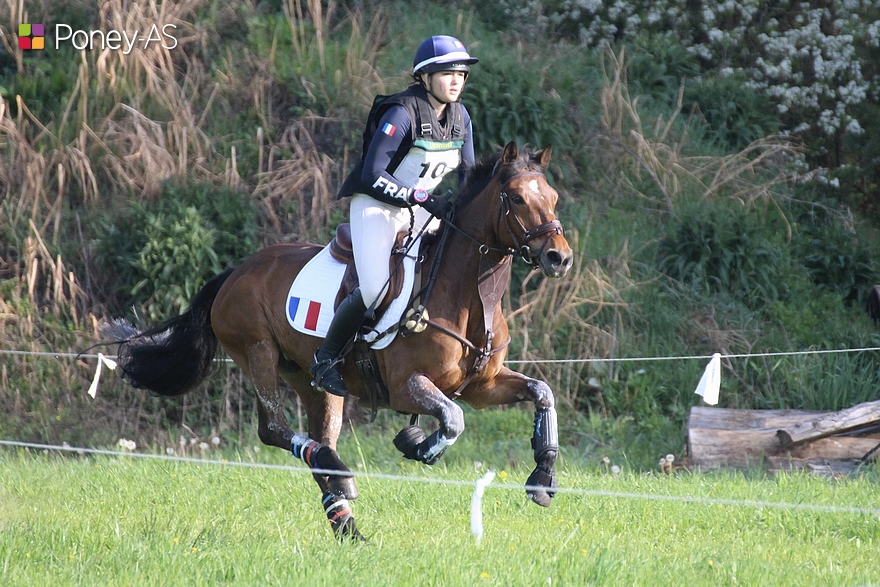 Pour la France, Émilie Aunac et Uriel de Tassine se sont placés aux pieds du podium provisoire après avoir réalisé un tour sans encombre (33 points). Noa Pelle et Gin GT la Templerie les ont talonné de près à la cinquième place et sont remontés de deux rangs malgré 2,4 points de temps dépassé (33,5 points). Louane Achard et Hold Up Gravière, tout comme Loéva Schwartz Dosse et Vanoise de Visyje, ont réalisé les deux autres « maxi » pour la France (respectivement septièmes, 33,9 points et douzièmes, 36,6 points). Anna Courrege Longue sur Flash des Étoiles et Ninon Giorgi avec Hoptimus du Closel ont pris quelques points de temps qui les ont classés huitièmes (34,2 points) et neuvièmes (34,2 points). Malheureusement pour les trois autres couples français engagés, Juliette Payen en selle sur Gyz’elle du Ham, Anna Courrege Longue cette fois-ci avec Vidock de Berder, et Zélie Burtin sur Easter de la Comoe, des déconvenues sur l’épreuve de fond les éliminent de la compétition.