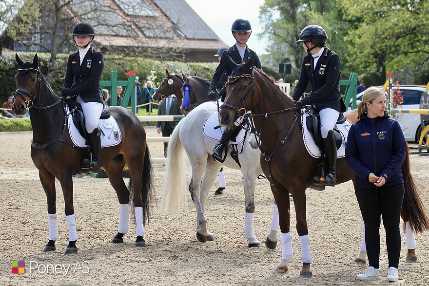 Ce n’est pas une mais deux équipes de France qui se sont déplacées en terres allemandes ce week-end. Noa Pelle (Gin GT la Templerie), Émilie Aunac (Uriel de Tassine*du Pic), Louane Achard (Hold Up Gravière) et Anna Courrege Longue (Flash des Étoiles) ont formé le premier groupe tandis que Ninon Giorgi (Hoptimus du Closel), Juliette Payen (Gyz’elle du Ham), Zélie Burtin (Easter de la Comoé) et Loéva Schwartz Dosse (Vanoise de Visyje) ont composé le second. Anna a également pris le départ en individuel aux rênes de Vidock de Berder.
