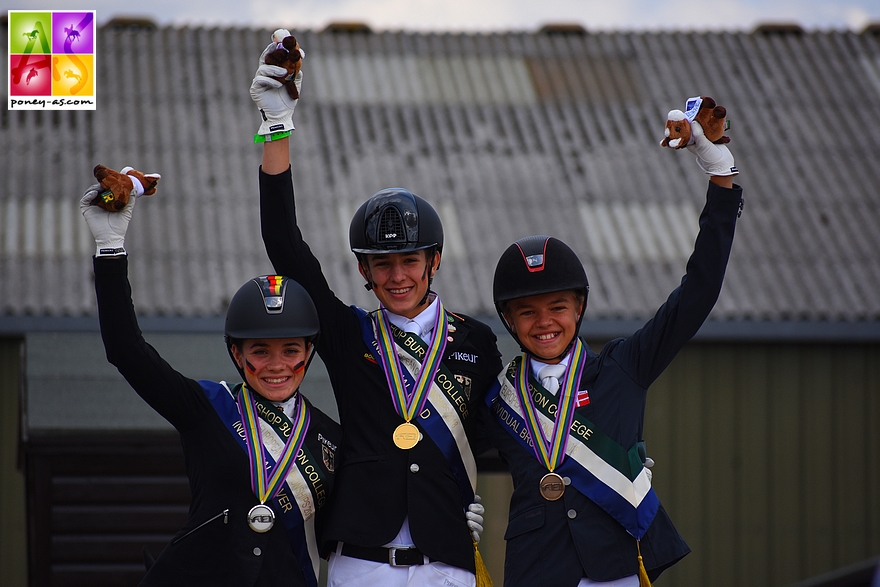 Le championnats d’Europe individuel de Dressage de Bishop Burton vient de se terminer. En tête hier avec la fabuleuse note de 77,189%, Moritz Treffinger garde la tête et s’adjuge une seconde médaille d’or consécutive avec sa Top Queen H ! Le Danois Alexander Yde Helgstrand associé à son excellent Adriano B (75,486%) est en argent et Jana Lang, toujours pour l’Allemagne, est en bronze (75,459%) en selle sur sa petite balle palomino NK Cyrill. Ces deux derniers cavaliers sont bien respectivement 2e et 3e même si leurs médailles ont été inversées lors de la remise des prix (erreur de recomptage de l’organisation). Aux 4e et 5e places respectives : une autre allemande sacrée l’an passé par équipes, Julia Barbian (Der Kleine Koenig 3) à 74,216% et la Néerlandaise Thessa Gilbers (Baumann’s Despino) à 73,838%.