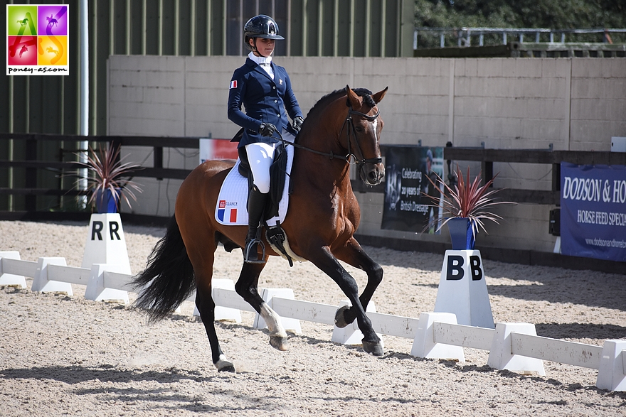 La grande Jade Leborgne et son fin Beltmeyer Linaro, encore un peu bas, ont déroulé une très agréable reprise avec des passages de qualité, mais avec un reculer compliqué à réaliser, suivi d’une grosse faute au trot moyen avec des foulées de galop, le couple a perdu beaucoup de points. Il est ainsi passé de 69 à 65%… puis s’est ressaisi pour au final terminer à 68,730% ! Sans cela, la Kür était à sa portée avec certainement un 70% à la clé. Dommage. Pour Lou Morali et Swyn Barrade, la reprise fut sans faute majeure. Le jury leur a accordé un 68,27%, « un score sévère. Les notes ne sont pas montées. On pouvait s’attendre à retrouver des 7,5 / 8 au trot comme hier et ce ne fut pas le cas. Il y a eu un ferme à ferme noté à 6, mais le reste était vraiment satisfaisant… », confiait déçue Muriel Léonardi. Enfin, pour Alexandre Cheret et sa championne de France Butterfly Dew Drop, la note n’a pu dépasser 67,432%. La locomotion est limitée, mais la technique était là, malgré une faute au galop où le couple est repassé au trot (figure notée à 3). Même en enlevant le 4e de chaque nation, aucun des 4 Bleuets ne participera à la Kür de demain. Aurore est 23e, Jade 24e, Lou 29e et Alexandre est 33e.