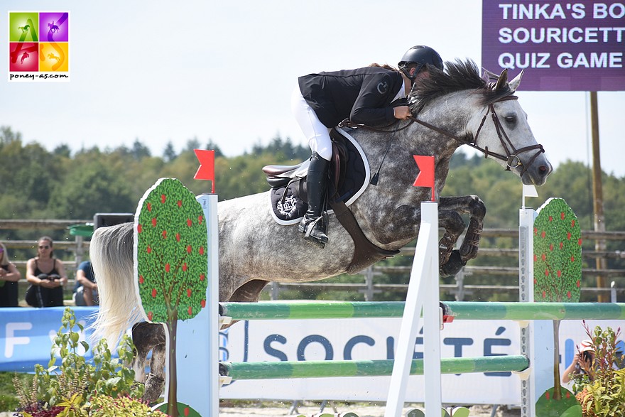 Cadix de Verduizant, la vice-championne, fille du célèbre Kwpn Tinka’s Boy et de la Welsh B Souricette d’Audes (par Quiz Game du Logis), est née chez Sylvie Leportois. Cette jument, classée Excellent à 5 et 6 ans, gagnante de 2 Grands Prix des 7 ans cette saison, évoluait sous la selle de Salomé Court, cavalière également du poney classé 9e, Cupidon d’Hurl’Vent (Machno Carwyn). Cette bonne jument a pour deuxième mère Souris d’Audes, à l’origine de nombreux performers dont le multimédaillé en C1 Elite/ As2C de CSO Joujou d’Audes. Elle évolue depuis la rentrée sous la selle de Judith Clavelloux avec qui elle est sans-faute en Grand Prix As Poney 1.