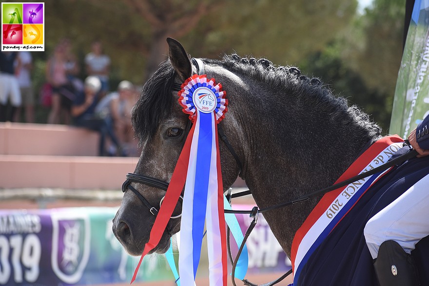Ce mâle gris, pas spectaculaire, mais montrant visiblement un bon mental et une envie de bien faire, s’est sorti de toutes les situations sous la selle avisée du cavalier professionnel Clément Bohren (pour qui le Sologn’Pony était une grande première) et s’est emparé du titre convoité de champion des 7 ans. Recalé à une précédente session, il obtiendra début octobre son approbation pour reproduire au sein de stud-book Poney Français de Selle.
