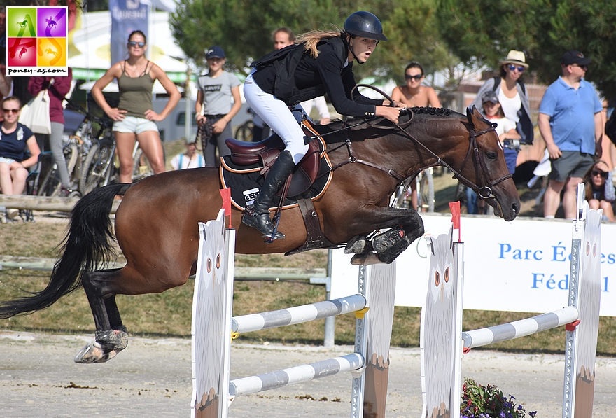 A l’issue de la première manche de cette finale du championnat de France As Poney Elite, le classement a quelque peu changé. Si Ilona Mezzadri et Ken van Orchid (Nrps, par Kanshebber et Orchid’s Celestiyi par Kantje’s Ronaldo SL, Nf) conservaient un score vierge, le seul après les trois premiers rounds et que quatre couples pointaient à 4 points – Anastasia Hamon / Badboï ar Kamenn, Kenzo Hodde / Tiga du Marais, Perrine Pottier / Ultralinaro de Lahaye et Agathe Masquelier / Alia des Cosses – d’autres en revanche ont craqué… Ce fut le cas d’Eléonore Lacomblez, victime de deux barres avec Virgule du Milon et d’un trou de mémoire (12 points), de Nohlan Vallat, 3 fautes avec Urlevent d’Hurl’Vent tout comme Eponine Saunier (Beauty Rocq).