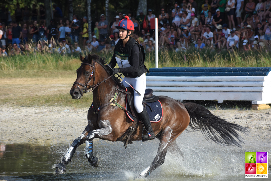 Cependant, de bonnes prestations ont également pu être observées. Tout d’abord, Lisa Gualtieri et son étalon O Ma Doué Kersidal restent en tête grâce à un cross sans faute aux obstacles avec seulement 3 secondes de trop (-25,6 au provisoire). Derrière elle, Jeanne Breuil remonte à la deuxième place provisoire, gratifiée de l’unique « maxi » (-28,7) ! Le très bon crosseur Winnetou, sous la selle de Lilou Ducastaing, n’enregistre lui aussi que quelques points de temps et pointe actuellement à la troisième place (-32,3). Jonas de Vericourt opère une belle remontée au classement provisoire : avec seulement 2 secondes de trop par rapport au temps parfait, il remonte au pied du podium provisoire (-32,8) en selle sur Vidock de Berder. Enfin Chloé Gualtieri, avec son tout bon Virtuose Teakitina, passe de la 14e à la 5e place provisoire avec un sans-faute aux obstacles et 2 points de temps dépassé (-33,3).
