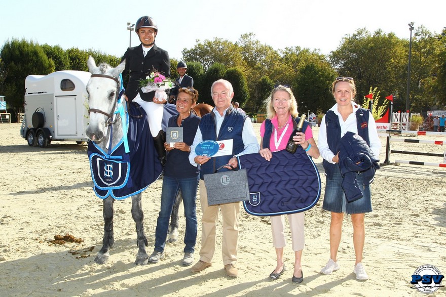 Le Pfs Djem du Casteras (par Papyrus Tyle et Kinup du Casteras par Djamel, Ar), né pour le compte de l’EARL du Casteras (09) et monté par Noémie Bosc, est donc vice-champion. Le voici gratifié d’un bien joli palmarès sur le circuit du Cycle Classique de CCE ! Djem et Doumbe sont les seuls à avoir bouclé un double sans-faute.