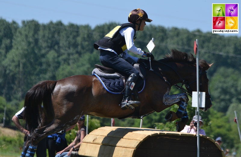 Le cross du dimanche, tenu en fin de matinée sous une chaleur intense, proposait sur une distance de 3160 mètres de plaine, 20 obstacles pour 29 sauts à franchir en 6 minutes 19. Parmi les difficultés, 2 des 7 combinaisons placées en n° 11 et 15. Cette dernière, nommée la combinaison de la colline, très technique, composée de 3 éléments située dans une descente, a fait l’objet de 3 éliminations : Clémence Andres en selle sur Quoquin de Grandy tout d’abord, avant qu’elle n’entraine la chute de Joséphine – déséquilibrée après le premier saut, la jeune cavalière et son poney ne se sont pas compris pour la suite de l’enchainement – et enfin la chute de notre meilleure cartouche lors des deux derniers championnats d’Europe, Mélissa Prévot associée pour la dernière année à son redoutable Podeenagh Aluinn. Drôle de scénario… Sur cette même combinaison, Lisa et O Ma Doué essuieront un refus (30 points score total pour le couple) ! Dans les billes au dressage, Eloïse et Taleyrac ne repartiront pas non plus sur l’hippique.