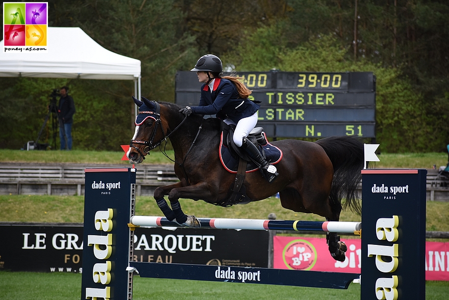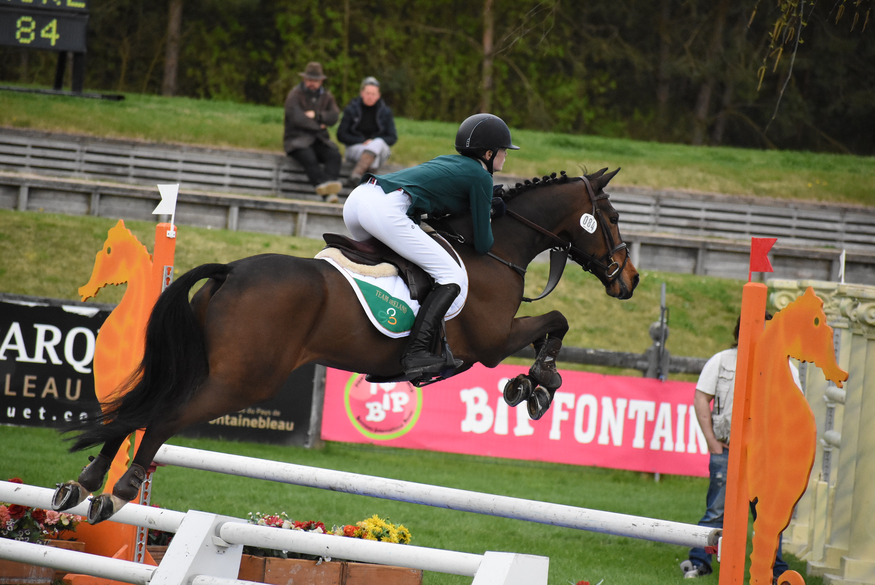 Deux Bleuettes montées sur la plus haute marche de la Coupe des nations ont aussi raté de peu le clear round. Leurs montures Callas Rezidal Z (par Campione Z) et Quabar des Monceaux (par Nabor SL) prenant toujours plus de hauteur, décidément en super forme sur le Grand Parquet ! Un bout de sabot fut constaté par le juge de la rivière ; Ilona Mezzadri et Romane Orhant n’auront pas non plus le l’opportunité de partir sur le barrage… couru néanmoins par deux tricolores : Margaux Courdent avec Un Champion Delalande (par Opplala St Hymer) et Arthur Delplace aux rênes de sa fidèle Tralala des Salines (voir portrait du cavalier dans la Magazine Poney As n°7 distribué au BIP).