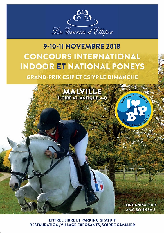 Après le Bonneau International Poney (BIP) de Fontainebleau, organisé chaque troisième week-end d’avril depuis 2001, l’équipe AMC Bonneau se diversifie et c’est à Malville (44), aux Ecuries d’Ellipse, qu’on la retrouvera au grand complet du 9 au 11 novembre. A vos agendas !
