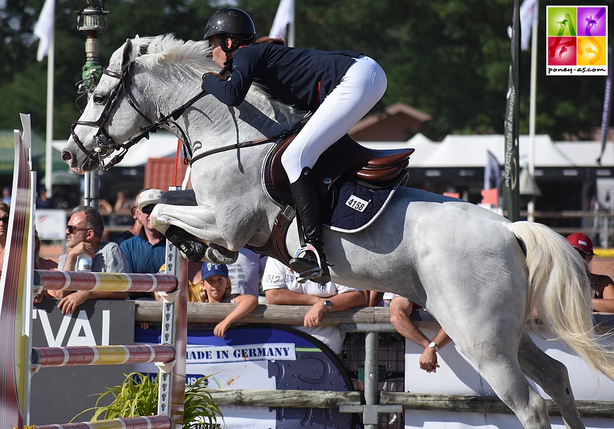Le Grand Prix As Elite est revenu dans l’escarcelle d’Amélie Turpin et de son bondissant Acrobate des Isles (Pfs, par Rambo SL, Nf et Roxane de Civry par Kantje’s Ronaldo SL, Nf), sans-faute en première manche et 4 points au barrage, plus rapide qu’Alexandre Fernandes et Shiper Dermont. Romane Lubrez, elle aussi de la partie du jump-off avec son excellente sauteuse Azur de la Hague (par Quabar des Monceaux), pointait au 3e rang (0+12). A la porte du barrage, 3 couples à 4 points : Pauline Scalabre (Sligo de Mormal, par Don Juan V), Mathieu Gomes en selle sur un autre produit de l’élevage de Mormal, Arkenciel, ainsi que Garance Berhouet de Beaupuis (Tequila des Monts).