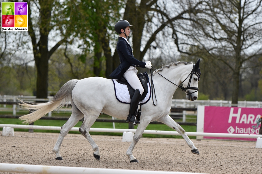 Le couple qui termine troisième aujourd’hui a également montré de bonnes choses et une bonne progression : il s’agit de Charlotte Monteilhet, associée à l’européen Dinky Toy VH Bloemenhof (67,886%). Cassandra Rouxel et Under Cover Fast terminent ici au pied du podium (67,724%). Enfin, Layla Schmid et Ashen Dew Drop (plus tendue qu’hier) sont cinquièmes (67,520%, soit légèrement en dessous de leurs performances récentes). A noter que les 3e, 4e et 5e places sont séparées par moins d’un demi point d’écart ; le combat fut rude pour monter sur le podium. Tous les détails comptent !