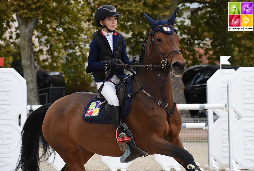 En 2015, associée déjà à Tutti Quanti Joyeuse*du Mystère, ponette appartenant à Lucie Proust Lelong, elle remporte la médaille d’or du championnat de France des As Enfants à Macon.