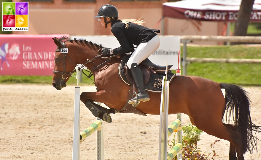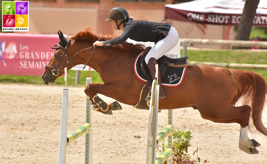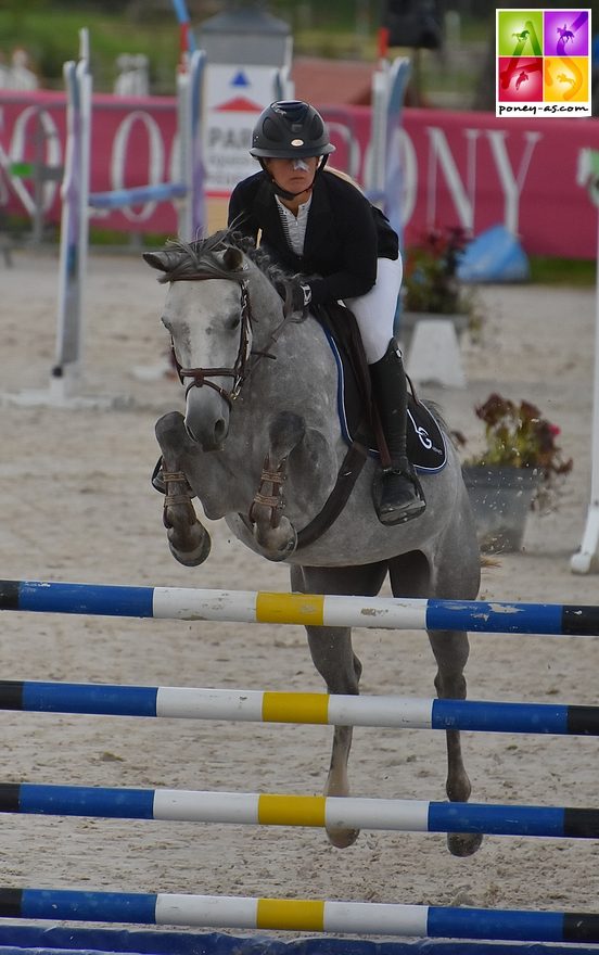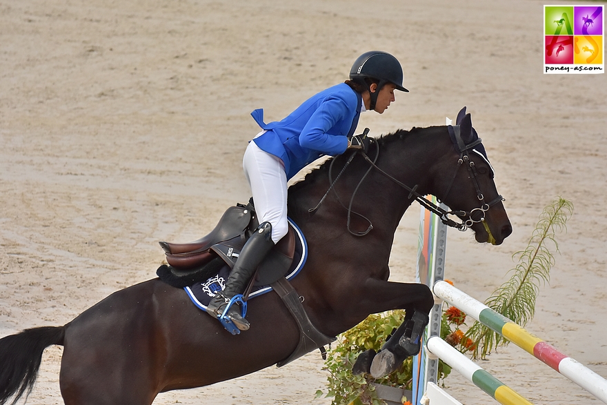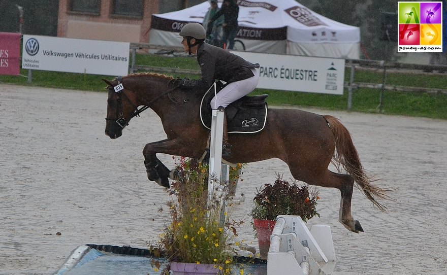 « Sa cavalière habituelle s’est accidentée il y a quelques jours et ne pouvait pas s’élancer sur les finales. Je monte au pied levé tous ses poneys dont Babouche », confiait Jennifer. Ce poney OC, fils de Sherif des Buis (Iram d’Audes, Wb x Tuc d’Entrammes, Pfs) et Sissie de Tatihou (Sfb par l’Anglo Laurier de Here) né chez Philippe Noel dans la Manche, n’a pas changé que de cavalière à la dernière minute : il tourne aussi sur le circuit que depuis cette année et est considéré par sa pilote habituelle « comme un poney volontaire, mais vert. Il sort en Poney 1 avec sa petite propriétaire qui nous l’a confié ». Mais l’anecdote ne s’arrête pas là. Jennifer Pardanaud a chuté lourdement la veille dans la finale des 7 ans avec le très bon Acrobate des Isles, alors qu’il ne restait plus que deux obstacles avant l’accès au barrage. Professionnelle, compétitrice et courageuse, la Normande s’est remise à cheval pour le barrage avec Aubépine Normande qu’elle avait qualifiée quelques temps auparavant, se classant 4e. « C’est une revanche sur la finale d’hier, oui. Mais je pense que je me suis bien esquintée le coccyx… ». Une belle leçon ! Pas sorti à 4 ans, puis sur de petites épreuves Ponam à 5 ans, Babouche de Tatihou avait à son actif 5 parcours sans-faute sur 11 sous la selle notamment de Christelle Zanibelli. Il a également participé aux championnats de France Poney 1 en juillet.