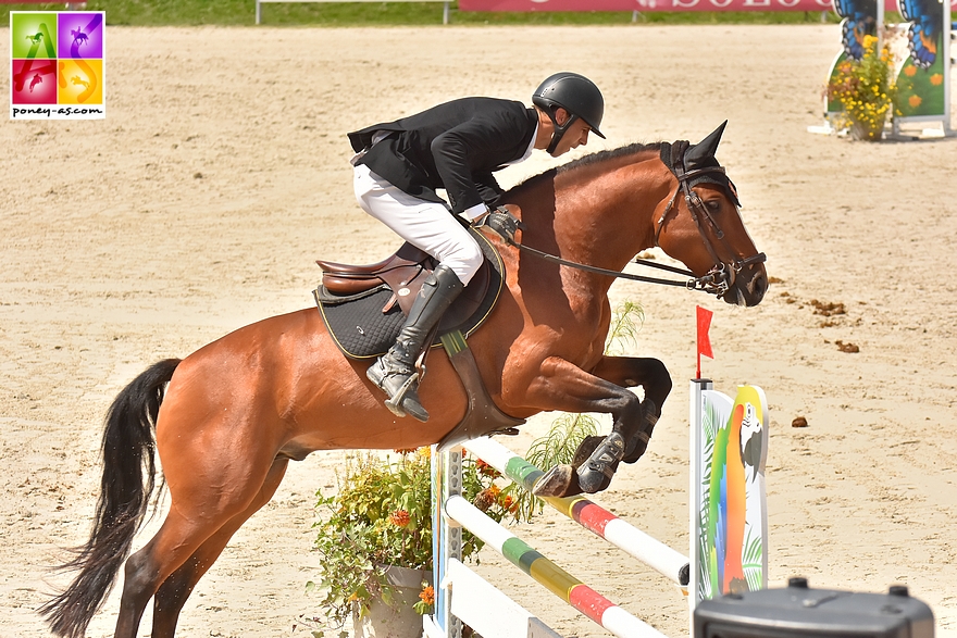 La généreuse et respectueuse Benzemma Lacour (Pfs, par Movie Star Tilia et Ululu de la Serre, par Lejano, Holst), née chez Françoise Girardot dans le 39, est 3e avec Romain Girardot. Là encore, un couple poney / cavalier / naisseur de la même famille ! Elle fut cette saison 7 fois sans-faute sur 9 tours de Cycle Classique (1,5 point de bonification) et a été pénalisée sur cette finale d’1 point de pénalité de temps sur chacun de ses tours. Excellent à 4 ans, puis Elite à 5 (IPO 134/16), la voici de nouveau gratifiée de la plus belle des mentions. Benzemma, très « cheval » au modèle, est le seul produit d’Ululu de la Serre (ISO 117/15), une petite fille d’Airborne Montecillo sur une souche Anglo.