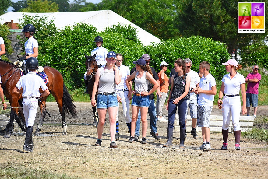Trop rapide, Lilou Ducastaing (Winnetou) fut pénalisée de 4 points (-35,1), Louise (Versailles) rétrogradait dans le classement à la 10e place pour 10 points de pénalités (-36,9), Shana Farkas (T’Ok de Nath) ajoutait 1,6 point à son compteur (-38,4), Eliot Barrière (Plume de Virey) réussissait le score parfait et gardait ses points de dressage (-38,9) et Lou et sa sanguine Qarisma y ajoutaient 7,2 points.